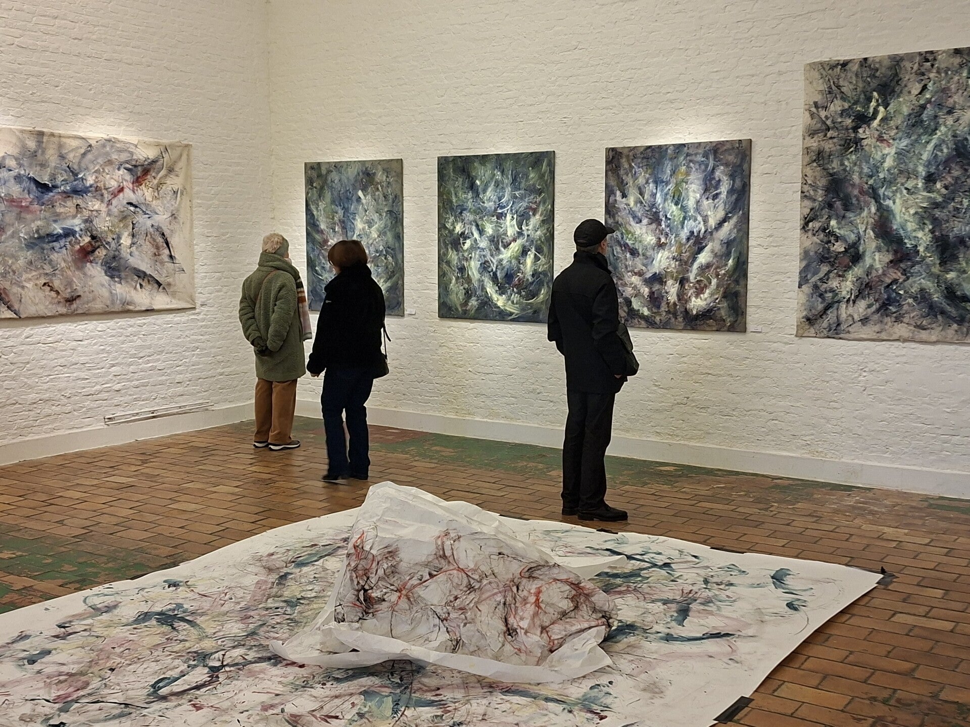 Hendrickx werkt bewust met materialen en dragers die reeds sporen dragen. Het canvas fungeert als een geheugen waarin verleden en heden samenkomen. De zichtbare sporen van beweging en gebaar, ontstaan tijdens performances of in het atelier, vertellen een gelaagd verhaal waarin elke handeling iets toevoegt. Het uiteindelijke werk vormt een stille weerspiegeling van wat zich in het moment heeft afgespeeld: een ontmoetingsplaats tussen herinnering en aanwezigheid, waarin het proces zelf voelbaar blijft onder het oppervlak.
